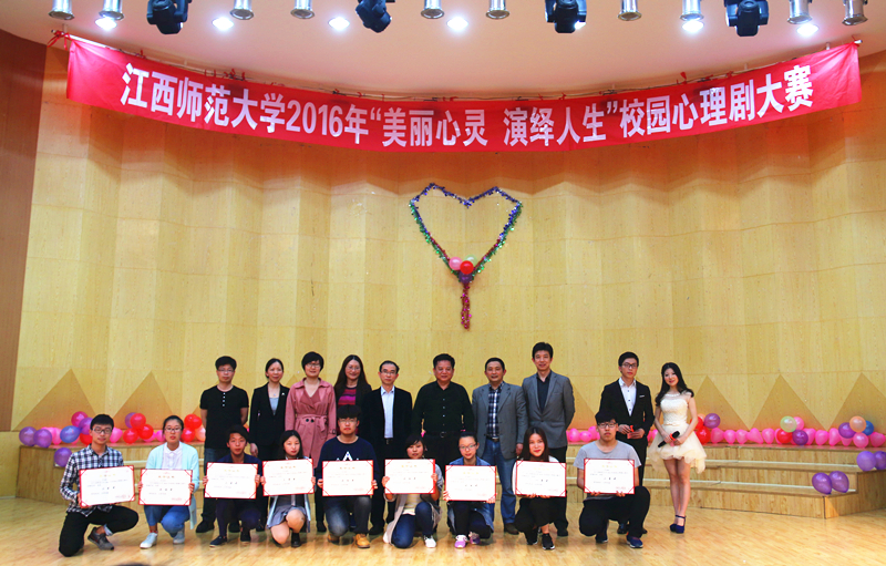 4月26日晚,以“美丽心灵,演绎人生”为主题的我校2016年校园心理剧大赛决赛在瑶湖校区音乐艺术广场报告厅举行。校长助理丁晖及校党委宣传部、研究生工作部、教务处、社科处、学生处等部门的领导老师们与同学们一起观摩了本次大赛。 经过初赛选拔的生命科学学院《健步奇缘》、文学院《私人定制》等10个学生自编自导自演,反映大学多姿多彩生活的节目先后登台表演。剧情涉及亲子关系、寝室关系、校园爱情、非法传销等校园常见的热点事件,精彩的表演、创新的形式,夸张的想象等,赢得了现场观众阵阵掌声。  经过两个多小时的激烈角逐,心理学院荣获一等奖,地理与环境学院、商学院获得二等奖,教育学院、软件学院、化学化工学院获得三等奖,生命科学学院、文学院、历史文化与旅游学院获得优胜奖。(文/校心理教育中心 图/龚道宏) |